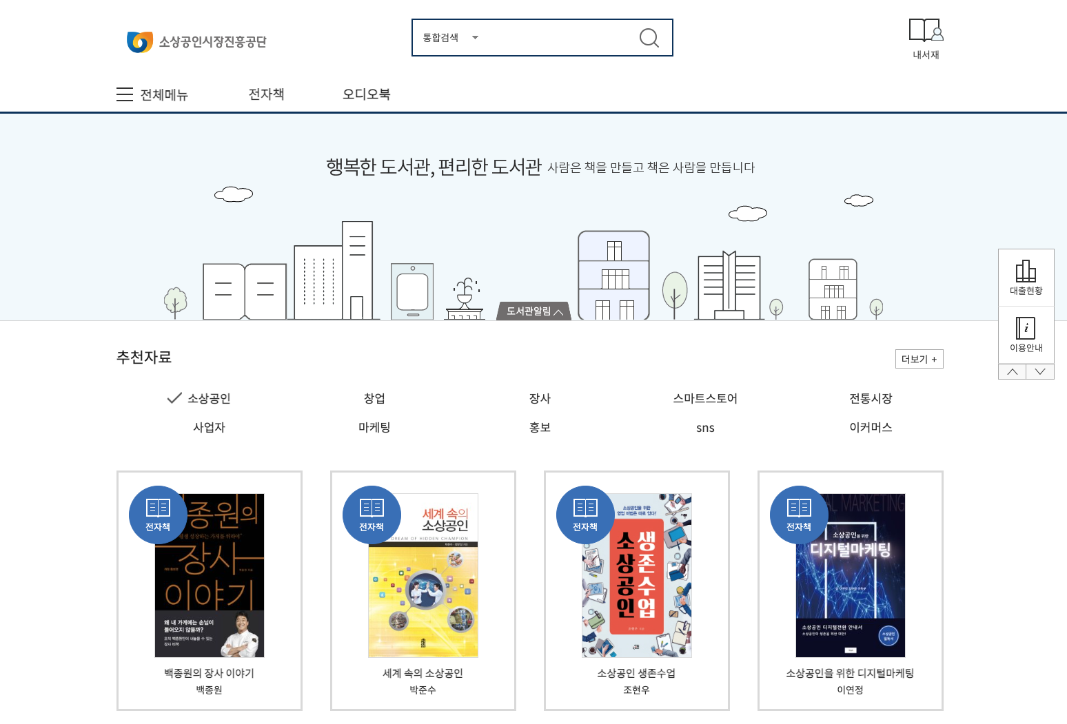 소상공인 지식배움터안에 전자도서관을 이용하여