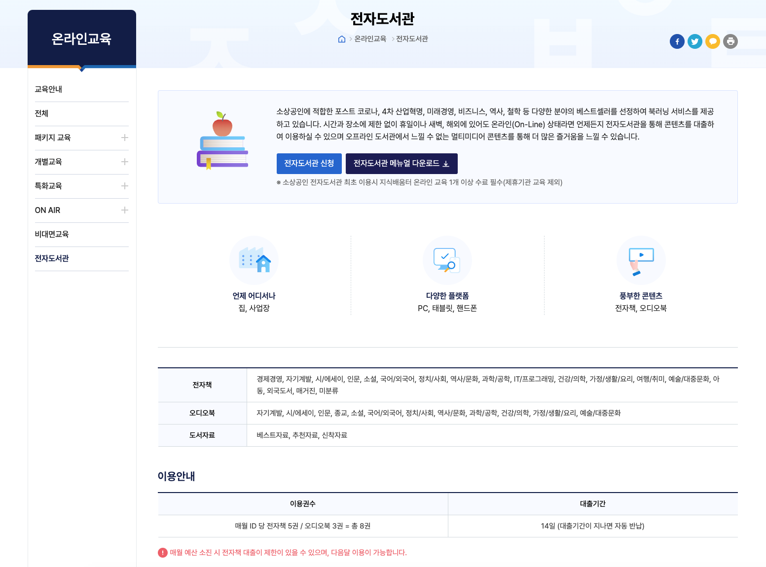 소상공인 지식배움터에서는 전자도서관뿐만 아니라